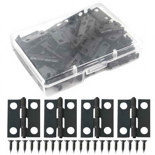 DDKY Mini Cerniere Da 50 Pezzi Con 200 Viti, Cerniere Piccole Mini Cerniera Cerniere Per Legno Cerniere Per Armadietto, Cassettiera, Scatola Di Legno (Nera)