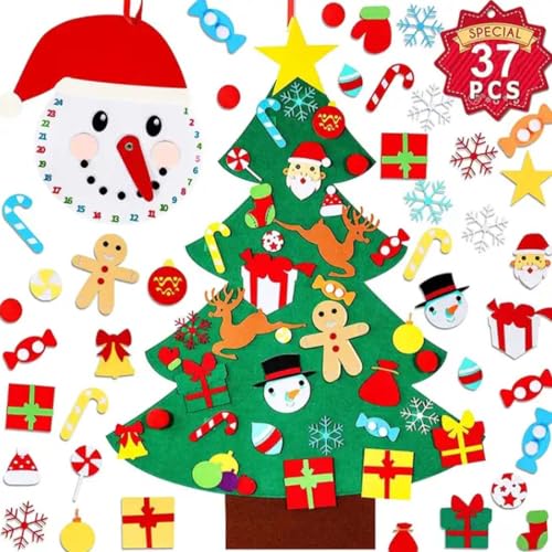DDKY 1 Set da 37 Pezzi Albero di Natale in Feltro 105CM più Pupazzo di Neve,Natale Decorazioni, Albero Natale Montessori per Bambini, Decorazione da Appendere in Velcro per casa, Porta e Parete
