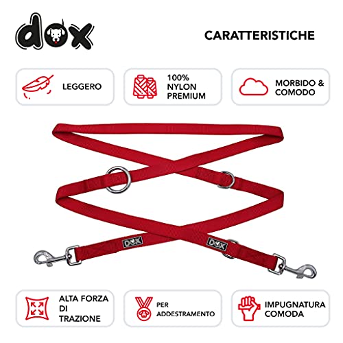 DDOXX Guinzaglio Addestramento per Cani in Nylon, Regolabile in 3 Modi, 2m | Cani Piccoli e Grandi | Doppio Guinzaglio Gatti Cani Cuccioli | Accessori Cani | Rosso, S