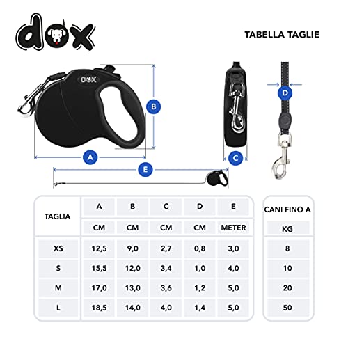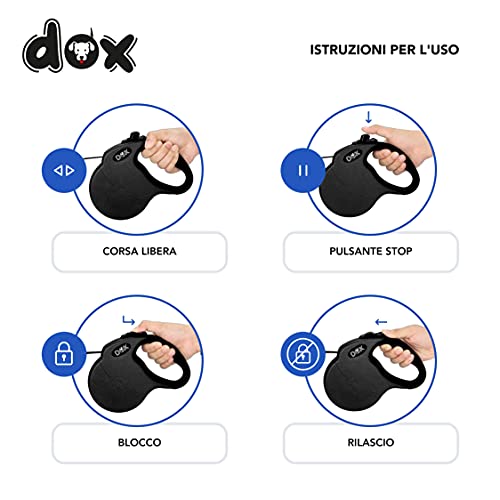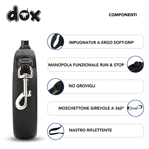DDOXX Guinzaglio Retrattile Per Cani Con Cinghia Riflettente, Adatto A Cani Di Piccola, Media E Grande Taglia, Lunghezza 5 Metri, Fino A 20 Kg, Colore Nero.