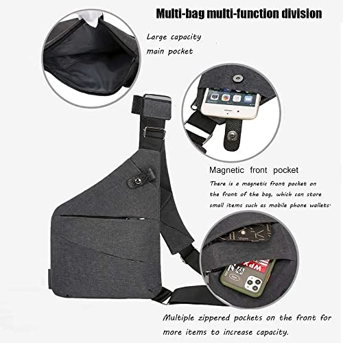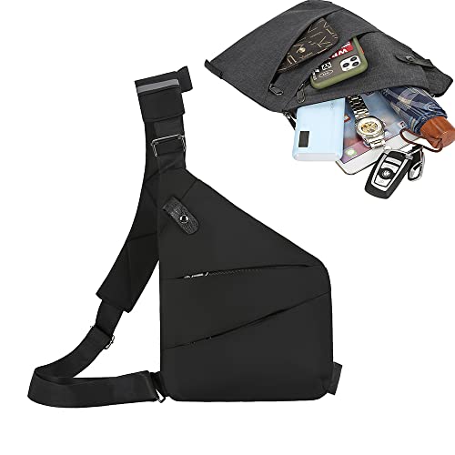 DDOY Personal Flex Bag, Borsa a Tracolla antifurto, Borsa Tascabile Personale per Uomo, Borse a Tracolla per Donna, Tasca sul Petto di Sicurezza antifurto per Uomo Donna (Black, Left)