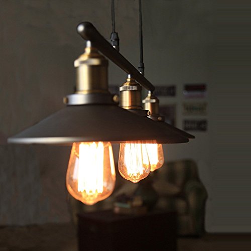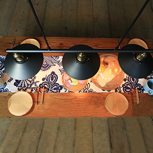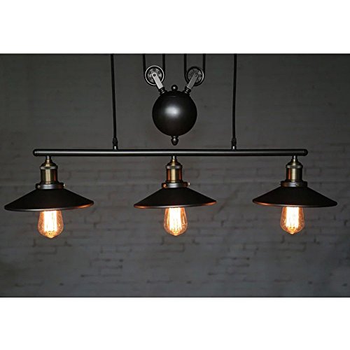 DDSC&CHX lampadario stile industrial con 3 lampade e puleggia in ferro, effetto vintage, di colore nero