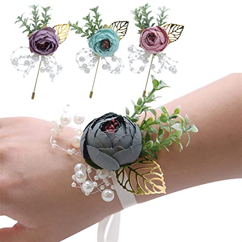DDSP Braccialetto da damigella d'onore Braccialetto di seta artificiale Rosa di seta con tessuto di perle flower flower wedding boutonniere accessorio (Color: B-Corsage)