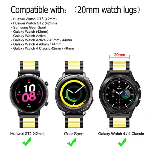 DEALELE Compatibile con Samsung Galaxy Watch 6/6 Classic / 5/5 Pro / 4/4 Classic / 3 41mm / Active 2, Cinturino di Ricambio in 20mm Metallo Acciaio Inossidabile per Huawei GT3 42mm, Nero/Oro