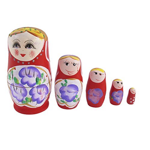 DealMux Flower Girl Painted Russian Style 5 Strati Nesting Doll Matrioska Rosso Viola