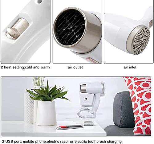 Deals Asciugacapelli phone da parete con 2 prese USB muro hotel spogliatoi