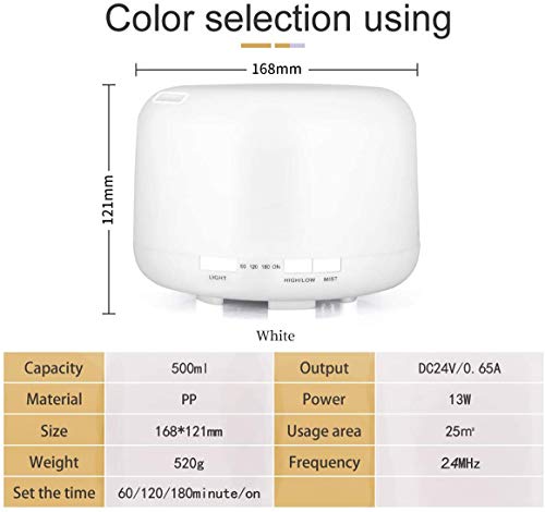 Deals - Umidificatore Per La Casa 500ml (7 Led A Colori Variabili 2 Modalità Nebbia D'Acqua 4 Impostazioni Timer Spegnimento Diffusore A Ultrasuoni Oli Essenziali Per Ufficio, Yoga)