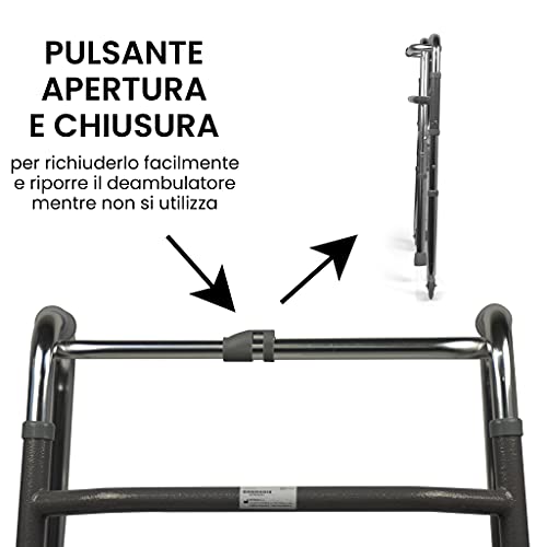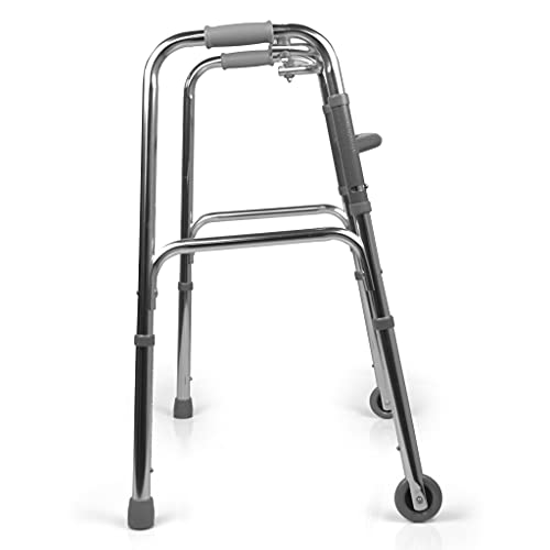 Deambulatore pieghevole, regolabile in altezza con 2 ruote e 2 puntali antiscivolo