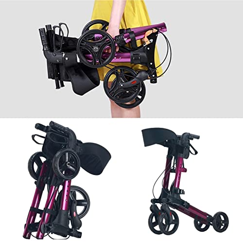 Deambulatore Ultraleggero Pieghevole in Alluminio con Regolazione in Altezza e Sedile imbottito,Dotato di 4 Ruote e Freni,Girello per Anziani Deambulatore Rollator
