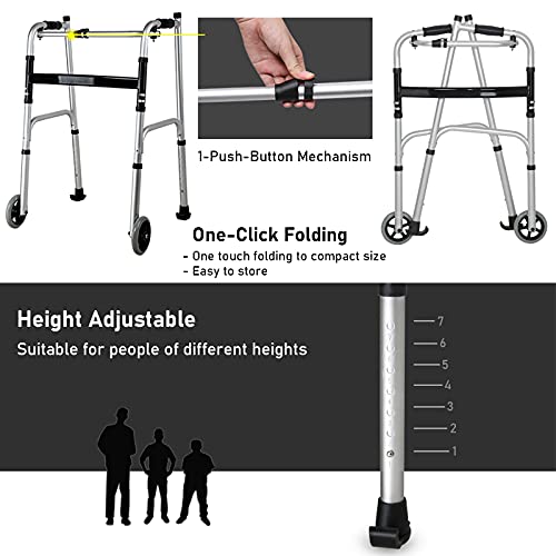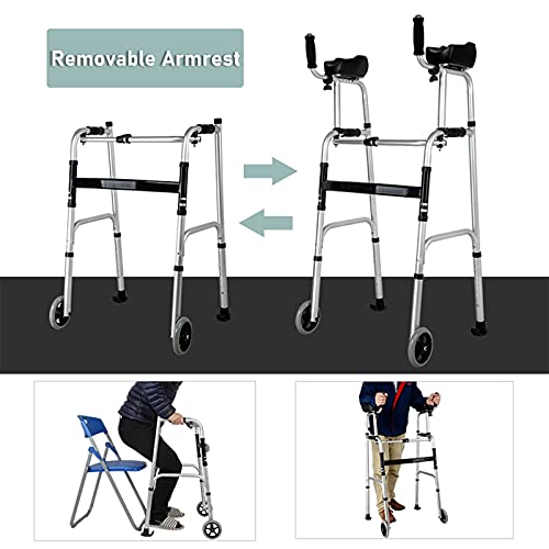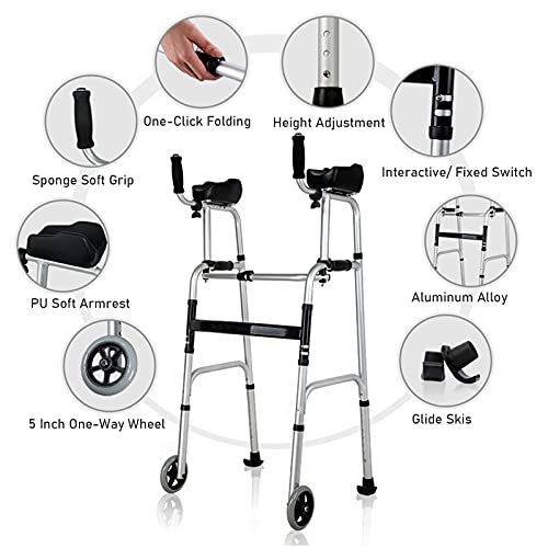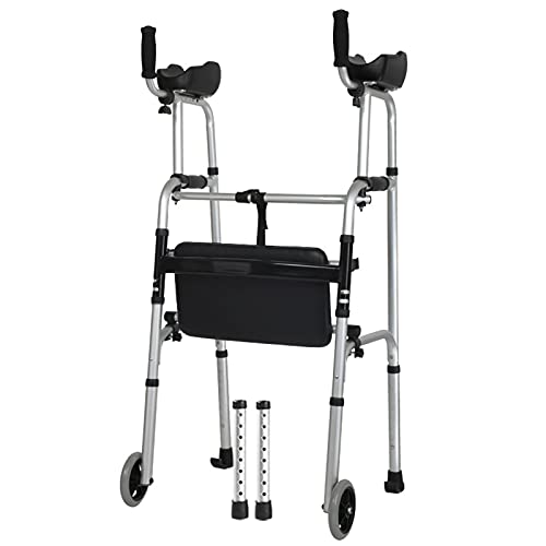Deambulatore verticale con 2 ruote e supporto per avambraccio, adulti anziani alti, aiuto per la mobilità pieghevole con un pulsante