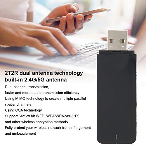 Deansh Adattatore di rete wireless, 2T2R doppia antenna Mini WIFI portatile RT5572 300Mps, scheda di rete wireless a doppia frequenza 2.4G/5G, supporta la funzione hotspot AP analogico