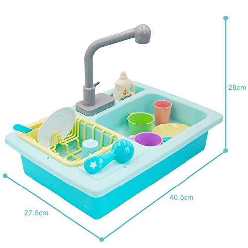 DeAO Lavello da Cucina Elettronico Lavandino Giocattolo per Lavare i Piatti Accessorii da Cucina per Bambini Set Giochi di Imitazione per Imparare (Blu)