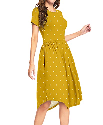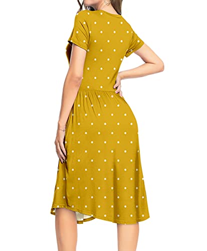 DEARCASE Vestito a Tunica a Maniche Corte da Donna Motivo a Pois Scollo Rotondo Vestito Midi per L'Estate Stile Scampanato Casual con Tasche 2XL, Giallo a Pois