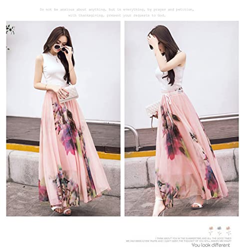 DEBAIJIA Maxi gonna da donna in chiffon estivo stampato floreale, indossabile in 3 modi come elegante gonna lunga o abito a vita alta, Grigio, XL