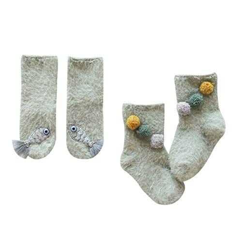 DEBAIJIA 2 Paia per Bambini Calzini Invernali in Cotone Spesso Morbidi che Dormono Calzini Svegli Caldi Traspiranti Antiscivolo, Stivali Calzini per Neonati 1-3 Anni Bimba Verde Chiaro - M