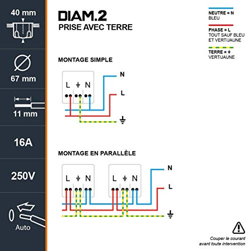 DEBFLEX 739900 DIAM 2 - Set di 4 prese 2P+T 16A e 2 VV, colore: Bianco
