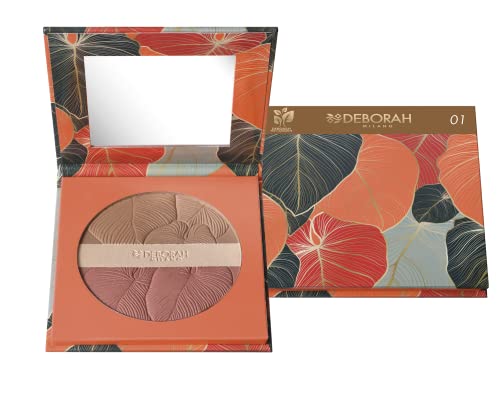 Deborah Milano - Maxi Terra Viso Compatta Tropical Bronze SPF 15, 01 Light, Bronzer, Blush e Illuminante Waterproof, Scorrevole e Setoso, Dona una Pelle Luminosa e Naturalmente Abbronzata, 18 gr