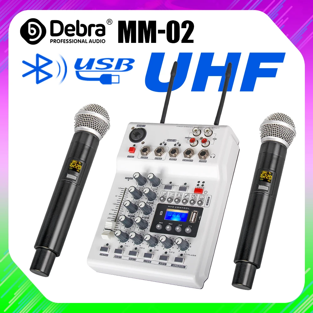 Debra Audio Soundcard DJ Console Mixer With 2 Channel UHF Wireless Microphone For Home PC Recording DJ Network Live Karaoke