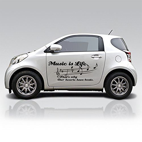 Decalcomania da parete in vinile con frase Music Is Life That's Why Our Hearts Have Beats 60x24cm,decorazione adesiva removibile con testo