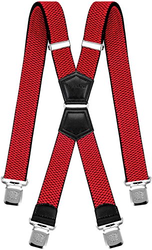 Decalen Bretelle Uomo Donna X Forma Elastici Registrabili Clip molto forti Colori Nero Blu Rosso (Rosso)