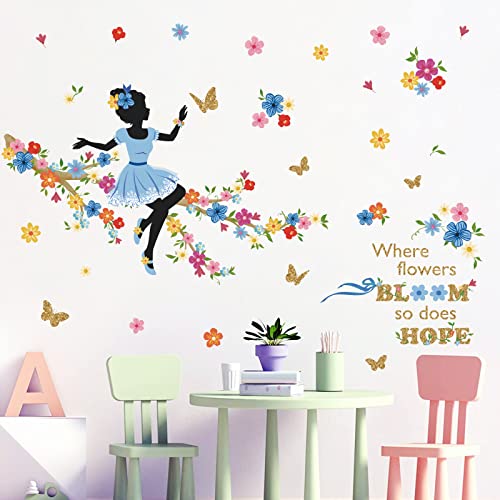 Decalmile Adesivi Murali Fata Ragazza Fiori Adesivi da Parete Ramo di Fiori Elfo Decorazione Murale Camerette Bambini Ragazze Asilo Nido