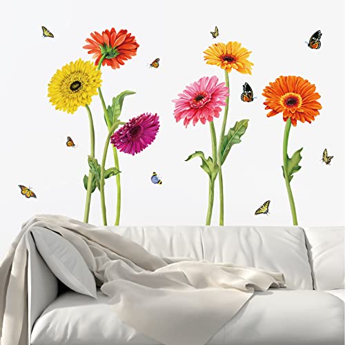 Decalmile Adesivi Murali Fiori di Gerbera Adesivi da Parete Crisantemo Farfalle Decorazione Murale Camerette Bambini Camera da Letto Soggiorno