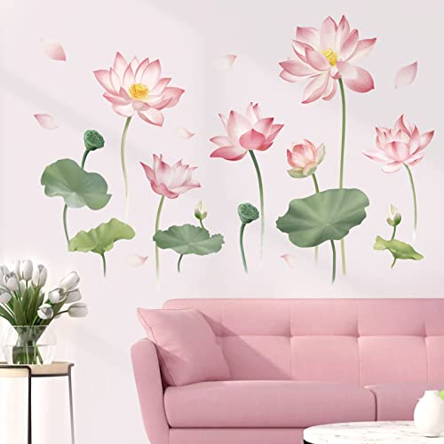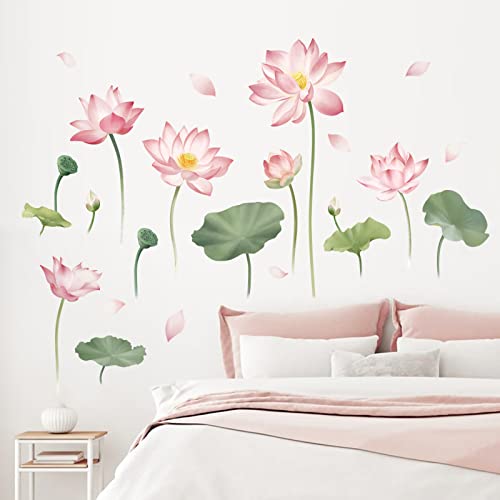 Decalmile Adesivi Murali Fiori di Loto Adesivi da Parete Rosa Floreali Pianta Decorazione Murale Soggiorno Camera da Letto Bagno