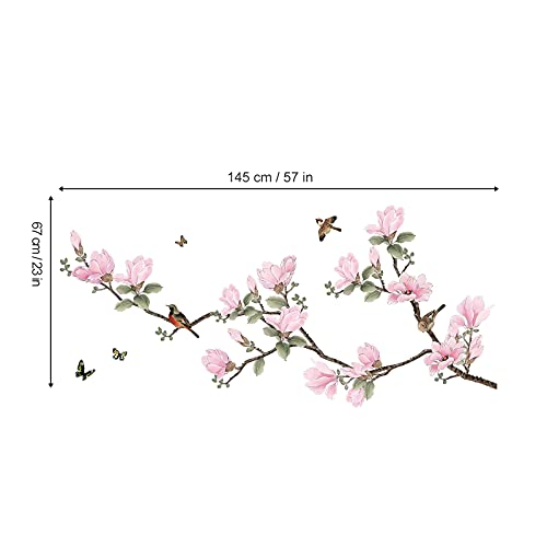 Decalmile Adesivi Murali Fiori Magnolia Rosa Adesivi da Parete Uccelli sul Ramo di Albero Decorazione Murale Camera da Letto Soggiorno Finestra
