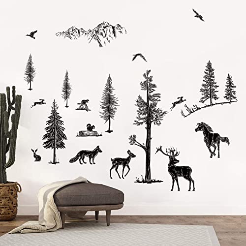 Decalmile Adesivi Murali Foresta di Pino Cervi Adesivi da Parete Animale Cavallo Decorazione Murale Camera da Letto Soggiorno Ufficio