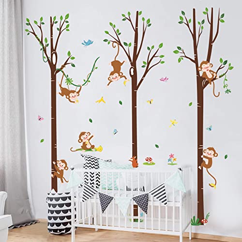 Decalmile Adesivi Murali Scimmia Albero Grande Adesivi da Parete Animali della Giungla Betulla Decorazione Murale Bambini Asilo Nido Camera da Letto