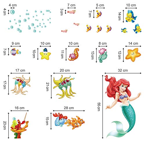 Decalmile Adesivi Murali Sirena Ariel Adesivi da Parete per Camere Ragazze Principessa Sotto il Mare Decorazione Murale Camerette Ragazze Bambini Camera Asilo Nido Camera da Letto Bagno