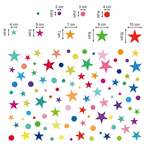 Decalmile Arcobaleno Adesivi murali a Pois e Stelle Stanza dei Bambini Stickers Murali Removibili per Bambino Asilo Nido Camera da Letto Bambini Stanza dei Giochi (1 Pack)