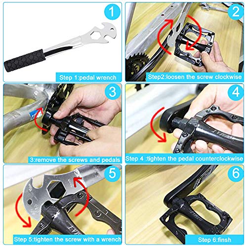 【Ampiamente usato】: adetto per bicicletta, mountain bike, bici da strada, bici da scooter eccellente, strumento eccellente per l'installazione dei pedali e la manutenzione di smontaggio, lavoro professionale ed efficiente