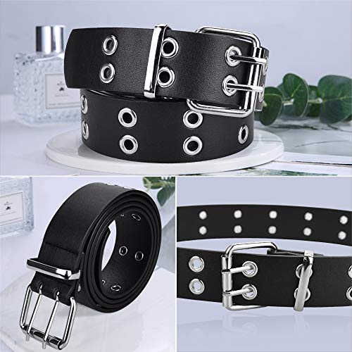DECARETA Cintura Rivetto a Doppio Foro con Pelle Cintura de Pelle con Rivetti Cintura di Cuoio Cintura con Buchi Stile Punk Rock con Una Catena Pantaloni Decorativa per Uomo e Donna 3.8*110cm (Nero)