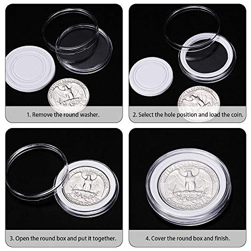 【Sigillato e anti-polvere】: il coperchio e il fondo di queste scatole per monete possono essere ben fissati, il che può svolgere una funzione antipolvere e proteggere efficacemente l'interno.Ogni scatola ha un'apertura a mezzaluna sul bordo esterno, che rende l'apertura e la chiusura più comode e facili.