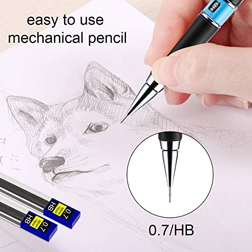 DECARETA 3 Pezzi Matita Meccanica con 120 pezzi di Ricariche a Matita da 0,7 MM, Matita Portamine 0.7MM HB Per Schizzi, Progetti d'arte, Scrittura Generale e Lavoro Tecnico (10 Scatole)