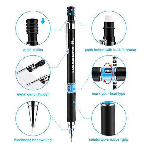 【Scrittura confortevole】- 0.7 mm/HB matita con mina, tutti in grafite di ottima qualità che non facilmente rotto ma scrittura senza intoppi. Ogni matita è dotato di una clip in metallo, design user-friendly, semplice e facile da trasportare.
