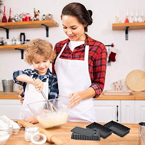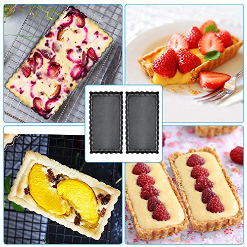 DECARETA 4 Pezzi Stampo Crostata Rettangolare Teglia per Crostata Rettangolare con Fondo Rimovibile Tortiera Rettangolare Apribile Stampo Crostata Antiaderente Rettangolare 11.3 * 6.2CM