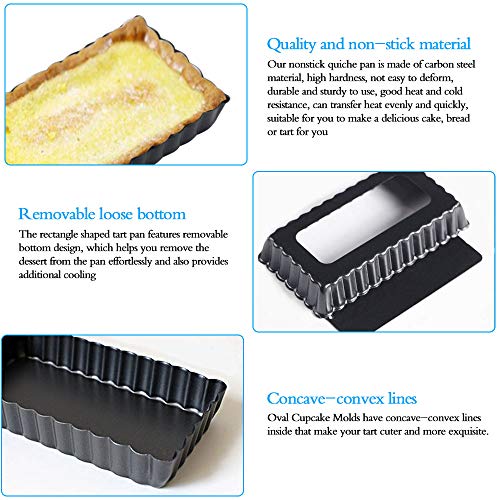 【Mini stampo per quiche】: ogni stampo è lungo circa 11,3 cm, largo 6,2 cm e alto 1,8 cm. Lo stampo mini è dotato di una punta ondulata ed è ideale per la produzione di mini torte