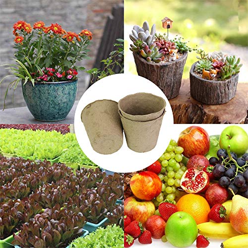 DECARETA 100 Pezzi Vasi Biodegradabili Vasetti di Torba con 100 Pezzi Etichette Vasi Tondi in Fibra 8 cm Vasetti in Fibra Biodegradabili per Piantine/Semi/Fiori/Giardinieri/Botanici