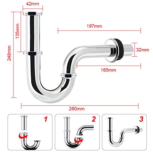 【Alta qualità】: Sifone in rame e cromo di alta qualità, protezione dalla corrosione, protezione dall'ossidazione, assenza di ruggine. Non devi preoccuparti del rischio di ruggine e rottura