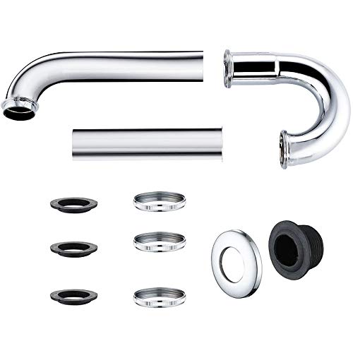 【Accessorio perfetto】:Sifone per lavabo con attacco standard da 1 1/4 '' (Ø 32mm), sifone di ottima qualità con aspetto cromato, il kit è veramente completo e viene fornito con un avviso montaggio