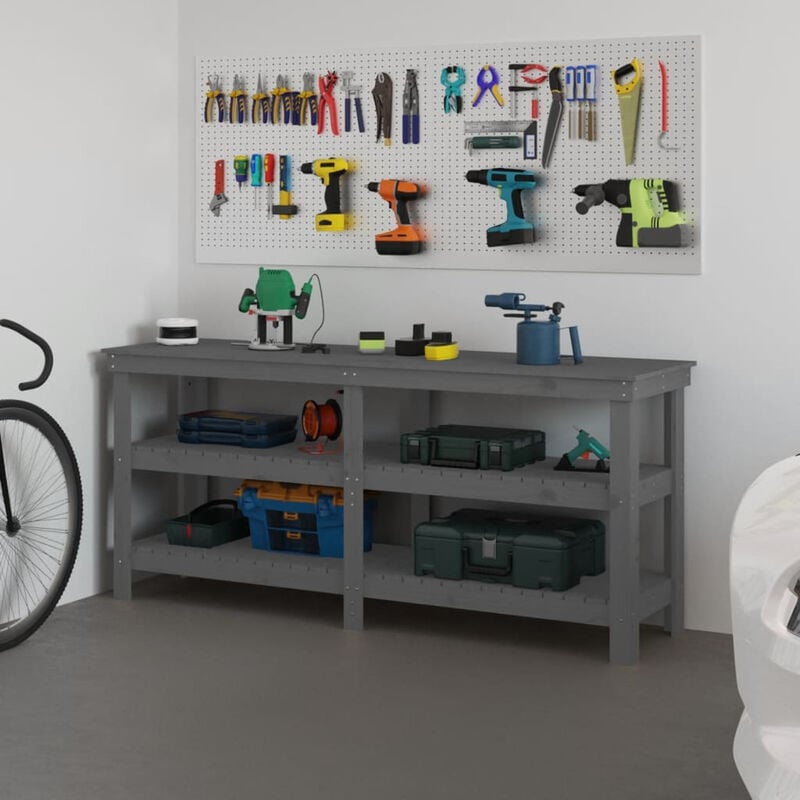Questa panca da lavoro in legno rappresenta una pratica aggiunta al vostro ambiente. Legno massello di pino: Il legno massello di pino è un bellissimo materiale naturale. Il legno di pino ha le venature dritte e i nodi conferiscono al materiale il suo caratteristico aspetto rustico. Ampio spazio portaoggetti: Questo banco da lavoro, dotato di ripiani, offre ampio spazio di conservazione per riporre i vostri oggetti in modo organizzato e a portata di mano. Telaio robusto: Il telaio in legno garantisce robustezza e stabilità. Attenzione: Per evitare il ribaltamento questo prodotto deve essere utilizzato con il dispositivo di fissaggio a parete fornito. Nota: Ciascun prodotto viene fornito con un manuale di assemblaggio nella confezione per un facile montaggio. Colore: Grigio Materiale: Legno massello di pino Dimensioni: 181 x 50 x 80 cm (L x P x A) Legal Documents: Maggiori dettagli su come evitare il rovesciamento dei mobili sono disponibili Colore: Grigio Materiale: Legno massello di