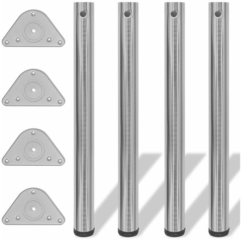 Questo set di gambe per tavolo di alta qualità sono state progettate per tavoli da cucina, tavoli, tavoli da lavoro, scrivanie ecc. Fatte in materiali di altissima qualità, queste gambe per tavoli sono stabili e resistenti. Grazie al piedino regolabile, l'altezza delle gambe da tavolo si possono regolare per compensare i dislivelli del pavimento. Il montaggio è molto facile e veloce. Colore: Nichel spazzolato Materiale tubi: Ferro Dimensioni: 60 x 710 mm (Diam x A) Piedini regolabili - altezza regolabile da 710 mm a 720 mm Per tavoli da cucina, tavoli da pranzo, tavoli da lavoro o scrivanie. Stabili e molto resistenti Assemblaggio facile e veloce La consegna include: 4 Tubi 4 Piedini 4 Staffe di montaggio 4 viti Colore: Nichel spazzolato Materiale tubi: Ferro Dimensioni: 60 x 710 mm (Diam x A) Piedini regolabili - altezza regolabile da 710 mm a 720 mm Per tavoli da cucina, tavoli da pranzo, tavoli da lavoro o scrivanie. Stabili e molto resistenti Assemblaggio facile e veloce La
