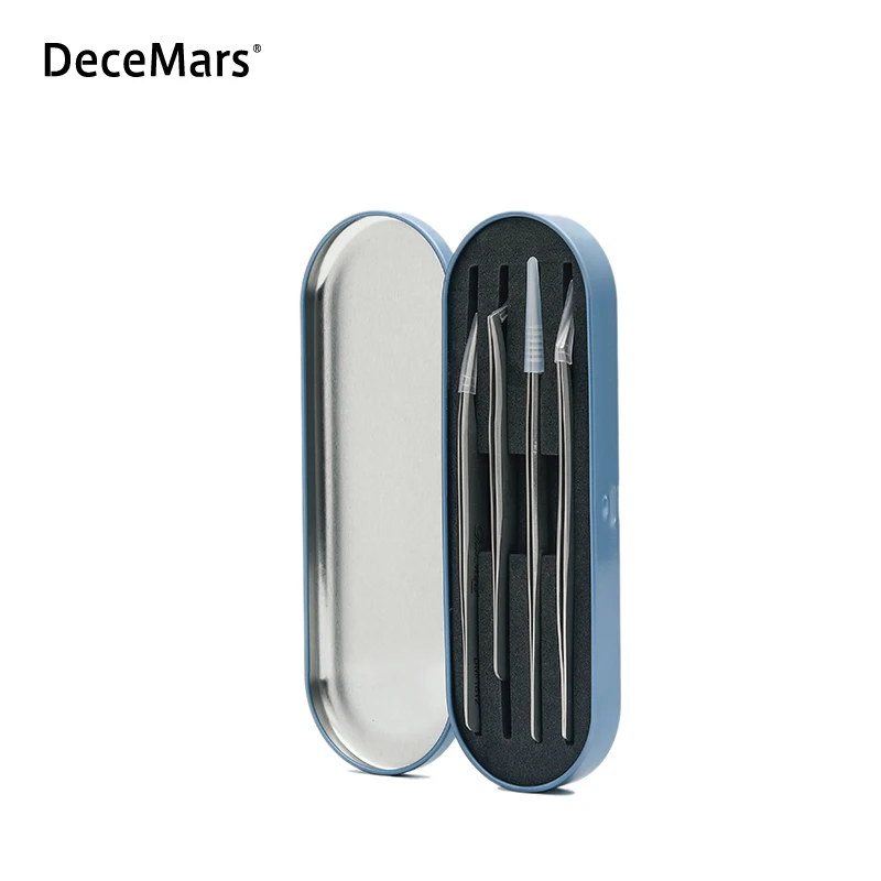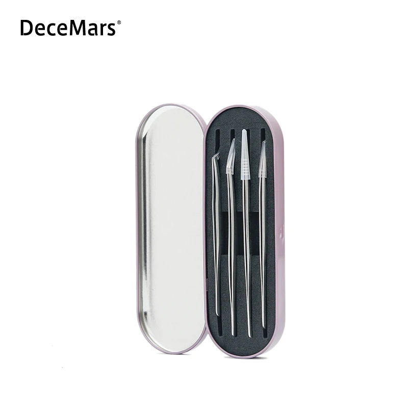 DeceMars Portable Eyelash Tweezers Box Cosmetic Case Blue Pink