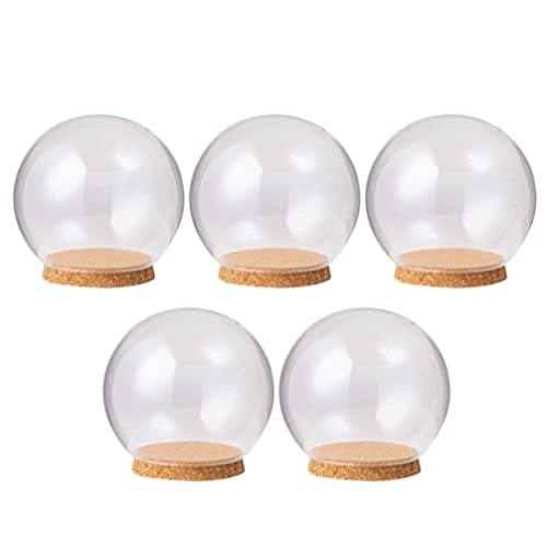 DECHOUS 5Pcs Cloche Campana di Vetro Rotondo Display Cupola con Base in Sughero Mini Bottiglie di Vetro Vetrina Terrario Display Cupola Fiore Conservato Cupola Copertura per Bomboniere di