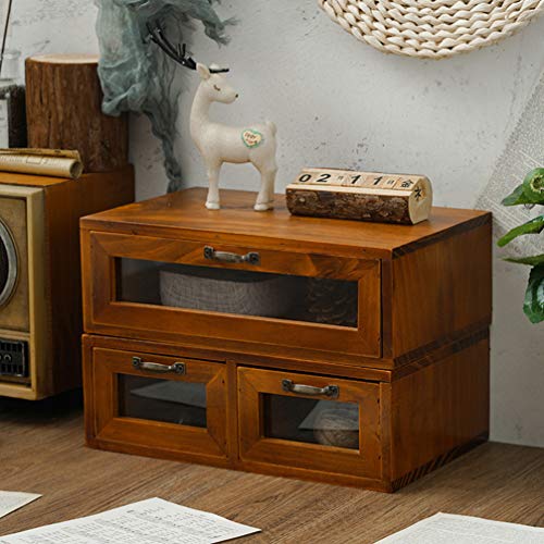 DECHOUS Supporto per Monitor Vintage in Legno con Cassetto Rialzo per Monitor Supporto per Laptop Organizer Scrivania per Laptop Marrone