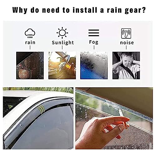 【FUNZIONE】: il vento e la pioggia disturbano la guida della tua auto con il finestrino laterale aperto? I deflettori antipioggia sono la soluzione perfetta! La copertura solare/pioggia è progettata per migliorare il comfort di guida in qualsiasi condizione atmosferica, soprattutto in caso di pioggia e nebbia. Con questi deflettori del vento installati puoi tenere le finestre aperte quando piove e tengono anche il sole lontano dai tuoi occhi laterali.