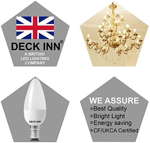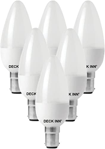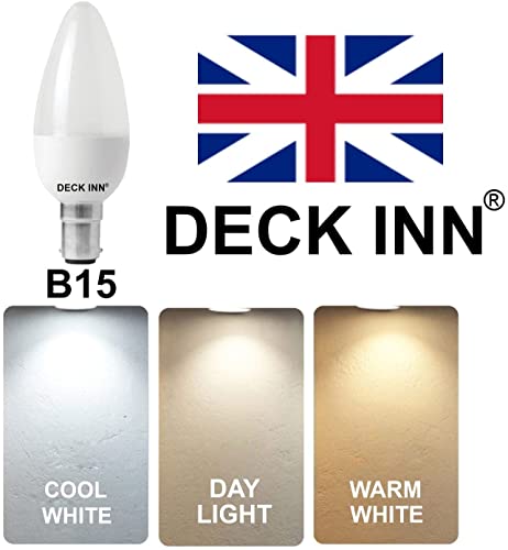 DECK INN Confezione da 4 lampadine LED B15, 6 W = 9 W = 60 W 600 lm, bianco caldo 2700 K, C35 SBC con attacco a baionetta piccola [classe energetica A+]