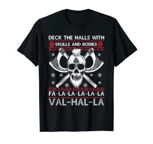 Deck Le Sale Con Teschi E Corpi Vichinghi Natale Maglietta